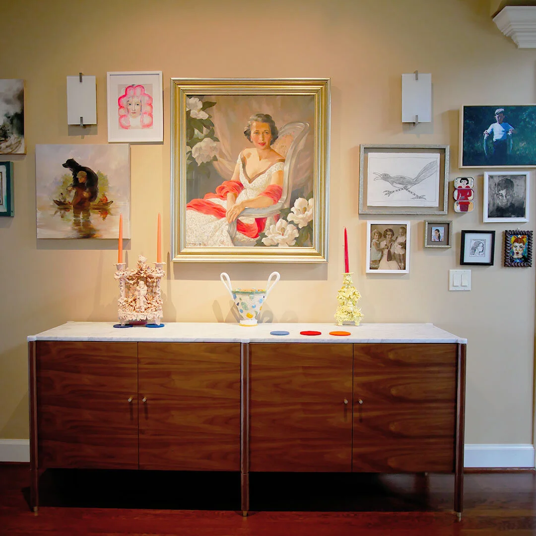 This client was moving into a nicely renovated home. We replaced the existing wall to wall carpeting with modern selections to brighten the rooms. We furnished the Primary Bedroom with a new bed frame for this color-loving client. We outfitted the home offices with display storage. We selected display units for the client’s extensive art collection in the Dining Room and Living Room and a credenza for the Entry.